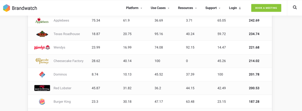 Their brand does not do too much story telling in any of their posts, which I think misses the mark. They are known as that family friendly fast food brand, yet they do not use heartfelt storytelling to bring in their audience. Additionally, I do not see much engagement when it comes to their employees, but they are highly ranked on Brandwatch, shown in the screenshot below. But what do I know? I’m not a part of their royal family.